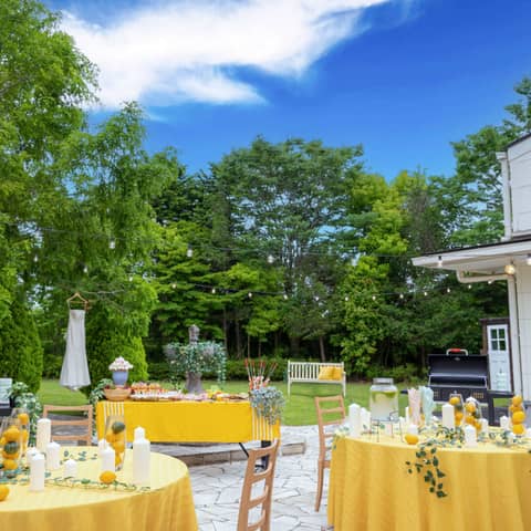 緑に囲まれた邸宅&ガーデンウェディング「アルシェ」は、敷地内に入ると緑豊かなガーデンに青空と